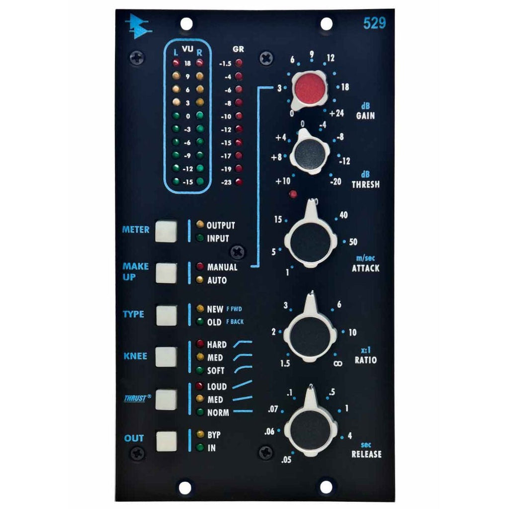 Basado en el éxito sin precedentes del 2500, el 529 incorpora muchas de las funciones y controles del famoso compresor estéreo de API en el primer módulo de doble ranura de la serie 500 de API. Este compresor estéreo incorpora el circuito THRUST® patentado por API para unos graves potentes, junto con un interruptor Old/New que permite elegir entre características de compresión clásicas y modernas: Old para la compresión de retroalimentación de estilo vintage y New para la compresión de avance más común. El botón de ganancia automática permite ajustar los controles de relación y umbral sin afectar el nivel de salida. Gracias a la tecnología de transformadores y amplificadores operacionales discretos de API, el 529 ofrece el legendario sonido analógico de API. El 529 está respaldado por la exclusiva garantía de 5 años de API.